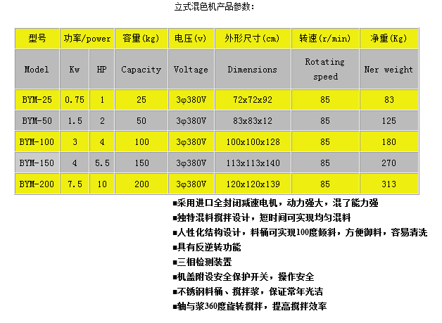 3、短時(shí)間內(nèi)完成均勻混料,低耗能;
