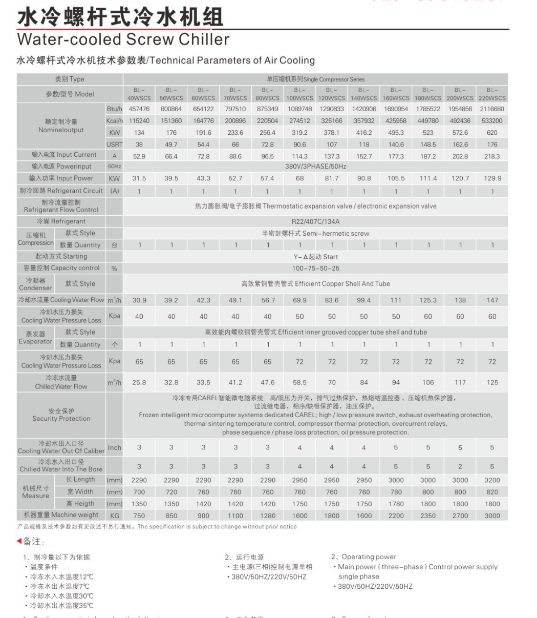 工業(yè)螺桿式水冷冷凍機(jī)特點: